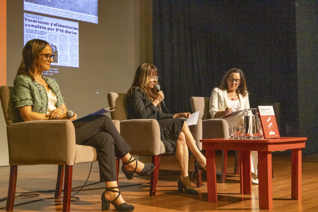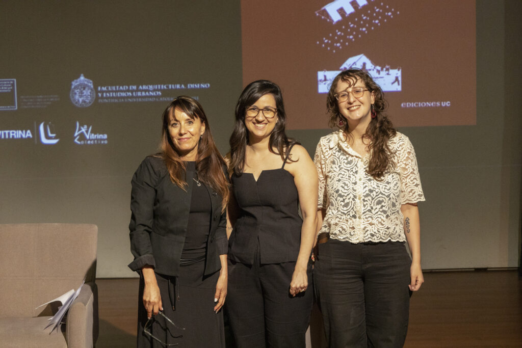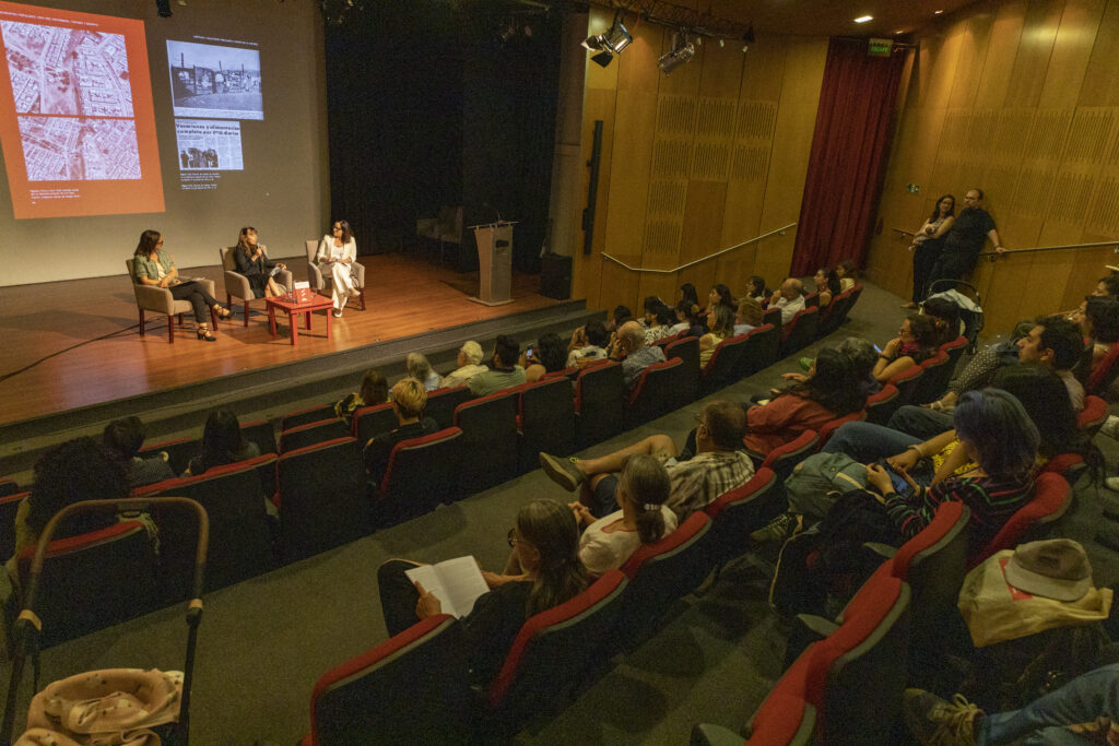 Durante la segunda parte del lanzamiento, se realizó una mesa de conversación en la que participaron la directora del Núcleo Milenio en Patrimonio (NUPAT), Macarena Ibarra, y la directora CENPUC, Macarena Cortés, que fue moderado y conducido por la periodista del Instituto de Estudios Urbanos y Territoriales, Rita Cox.