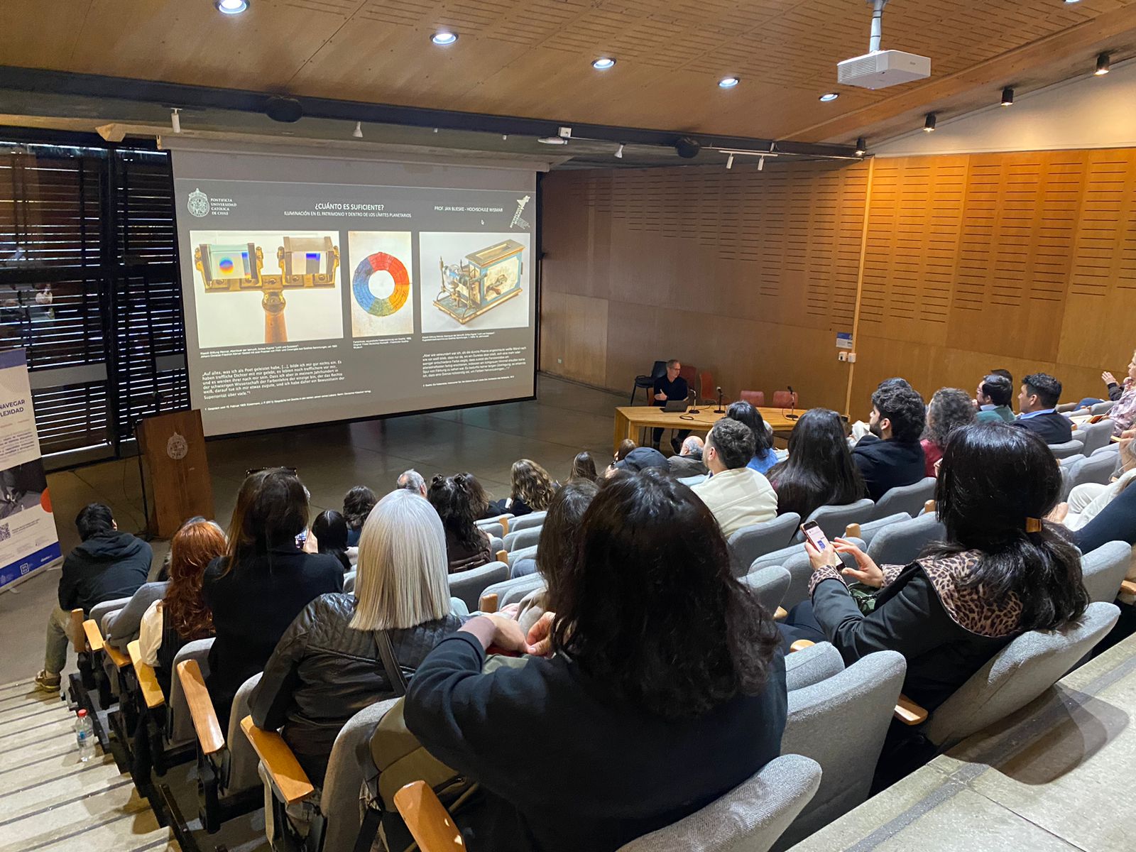 En la instancia, organizada por el Magíster en Diseño Avanzado (MADA) de la escuela de Diseño -y en particular por el profesor a cargo de la Mención en Iluminación, Douglas Leonard-, Blieske explicó cómo intervenir con luz en entornos culturalmente sensibles sin comprometer los límites planetarios, en una charla que transitó entre la eficiencia energética, la presentación del valor patrimonial, la percepción espacial y los desafíos del diseño responsable frente al cambio climático.