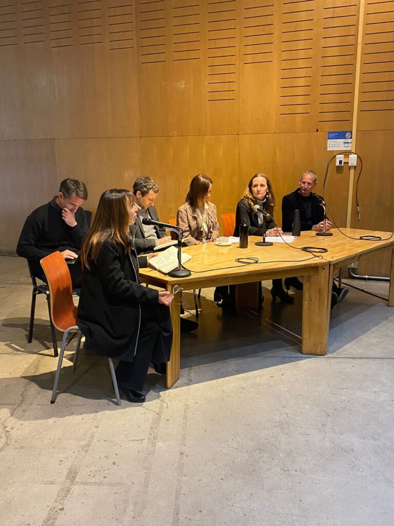 Su charla cerró con una mesa de conversación que dirigió la directora del Centro del Patrimonio Cultural UC, Macarena Cortés, en la cual estuvieron presentes los profesores Emilio de la Cerda y Elvira Pérez (Arquitectura), Martín Tironi (Diseño) y Macarena Ibarra (Instituto de Estudios Urbanos y Territoriales).