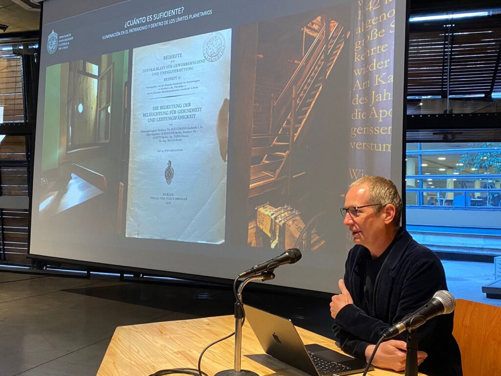 Desde su experiencia en el diseño de iluminación aplicada a espacios patrimoniales, el profesor de Diseño de Iluminación y Arquitectura de la Universidad de Ciencias Aplicadas de Wismar, Jan Blieske, ofreció una charla magistral en el campus Lo Contador UC bajo el título ¿Cuánto es suficiente?