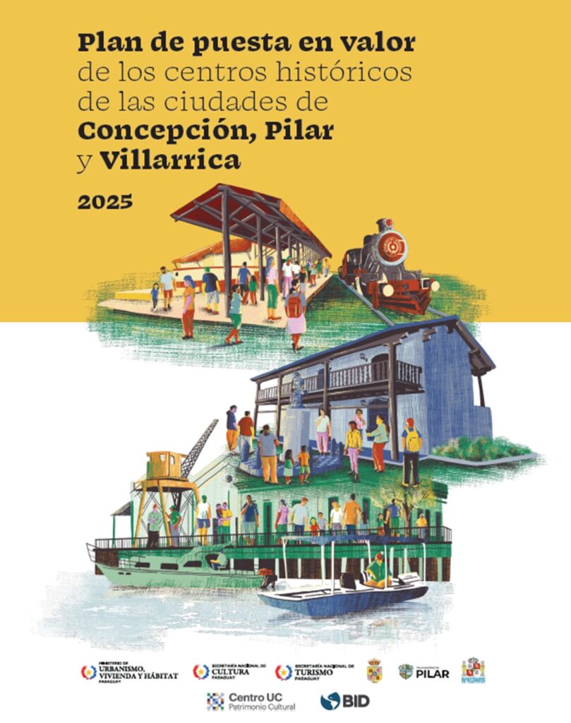 Se ha dado a conocer recientemente una nueva publicación: “Plan de puesta en valor de los Centros Históricos de Pilar, Concepción y Villarrica”, iniciativa en la que participaron conjuntamente el Ministerio de Urbanismo, Vivienda y Hábitat de Paraguay; la Secretaría Nacional de Cultura de Paraguay; la Secretaría Nacional de Turismo de Paraguay; Las municipalidades de Pilar, Concepción y Villarrica de Paraguay; el Centro del Patrimonio Cultural de la Universidad Católica de Chile; y el BID.