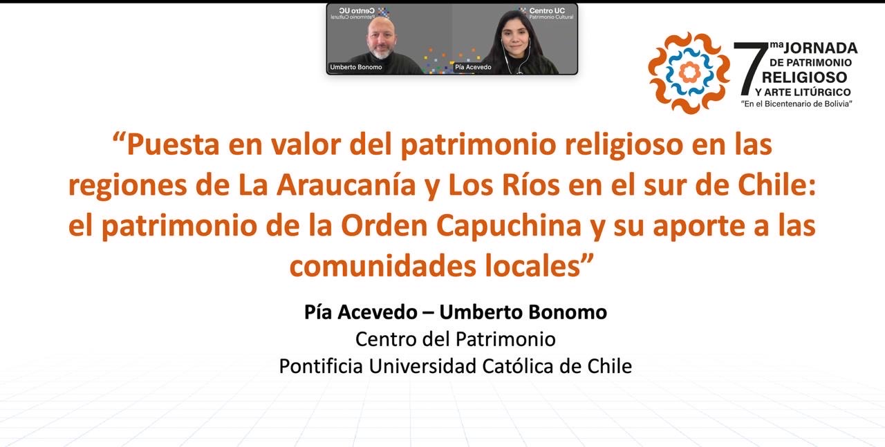 En esta instancia participaron Umberto Bonomo y Pía Acevedo, con la charla magistral “Puesta en valor del patrimonio religioso en las regiones de La Araucanía y Los Ríos en el sur de Chile: el patrimonio de la orden capuchina y su aporte a las comunidades locales».